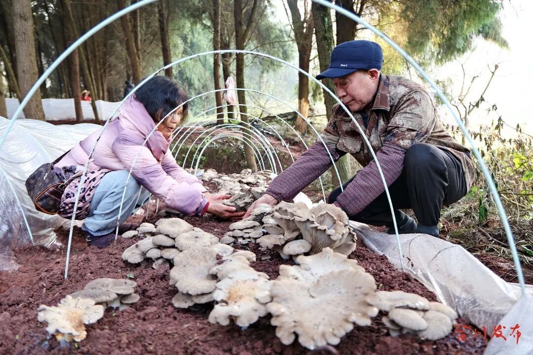 1月9日,冬日暖阳洒向隆兴镇安乐村金蟾谷农旅创业园灵芝菇种植示范基地,连片的菌棚内生意盎然,一朵朵饱满鲜嫩的灵芝菇簇拥生长,工人们正穿梭其间忙着采摘、分拣,空气中弥漫着清新的菌香,一派丰收忙碌的喜人景
