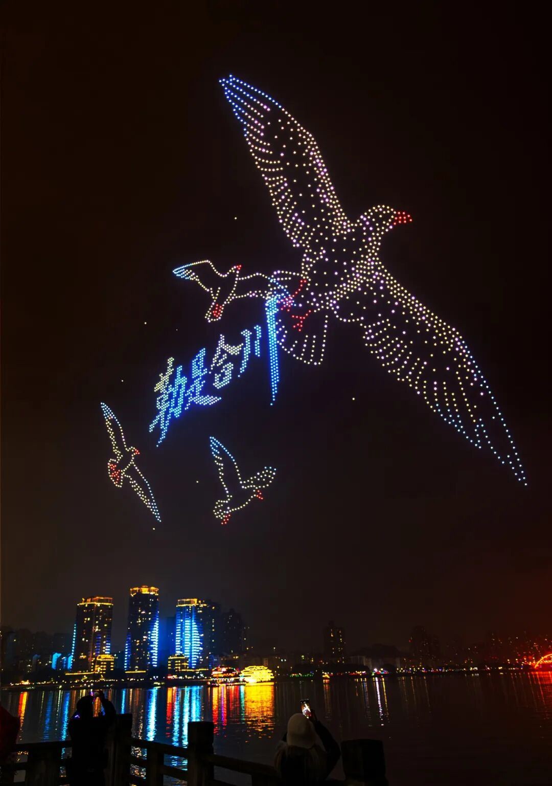15222 次浏览 01-04流光万点天之畔,“星河”一道水中央。2025年12月31日晚,嘉陵江、渠江、涪江交汇处的合川区“最美江湾”,一场融合科技魅力与传统温情的大型无人机表演与河灯投放活动璀璨上演。天上,无人机编队以苍穹为幕