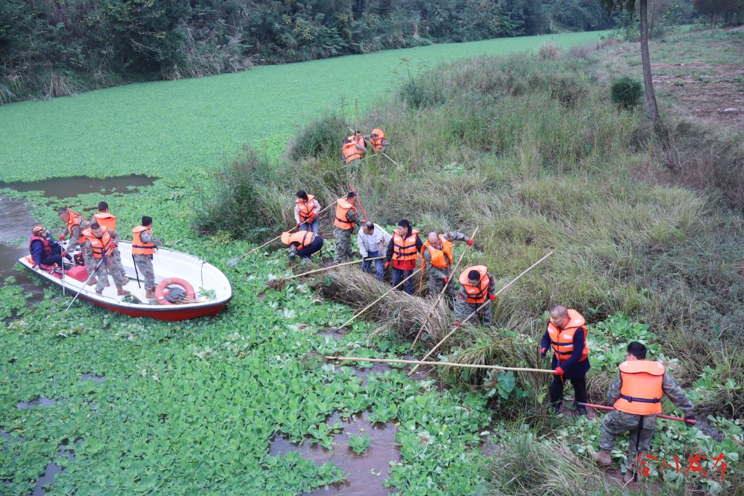“大家把几根竹子首尾用绳子捆绑起来,丢到河里两头拦截,这样清理很快……”11月12日下午,在太和镇楼房村和石墙村之间的赤水河段,人头攒动、气氛热烈。上百名党员干部、社区居民、志愿者和民兵身着救生衣,手