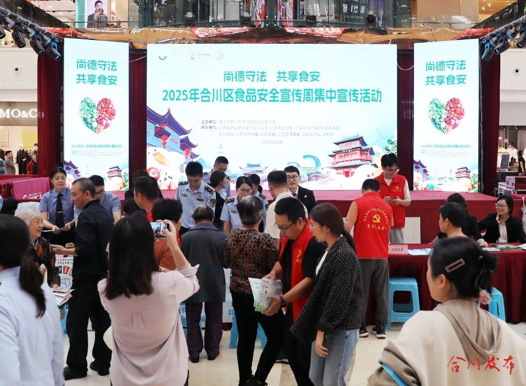 15403 次浏览 10-16为进一步普及食品安全知识,提升公众食品安全意识,营造全社会共建共治共享食品安全的良好氛围,10月15日,以“尚德守法 共享食安”为主题的2025年合川区食品安全宣传周集中宣传活动在绿港·财富广场举行。