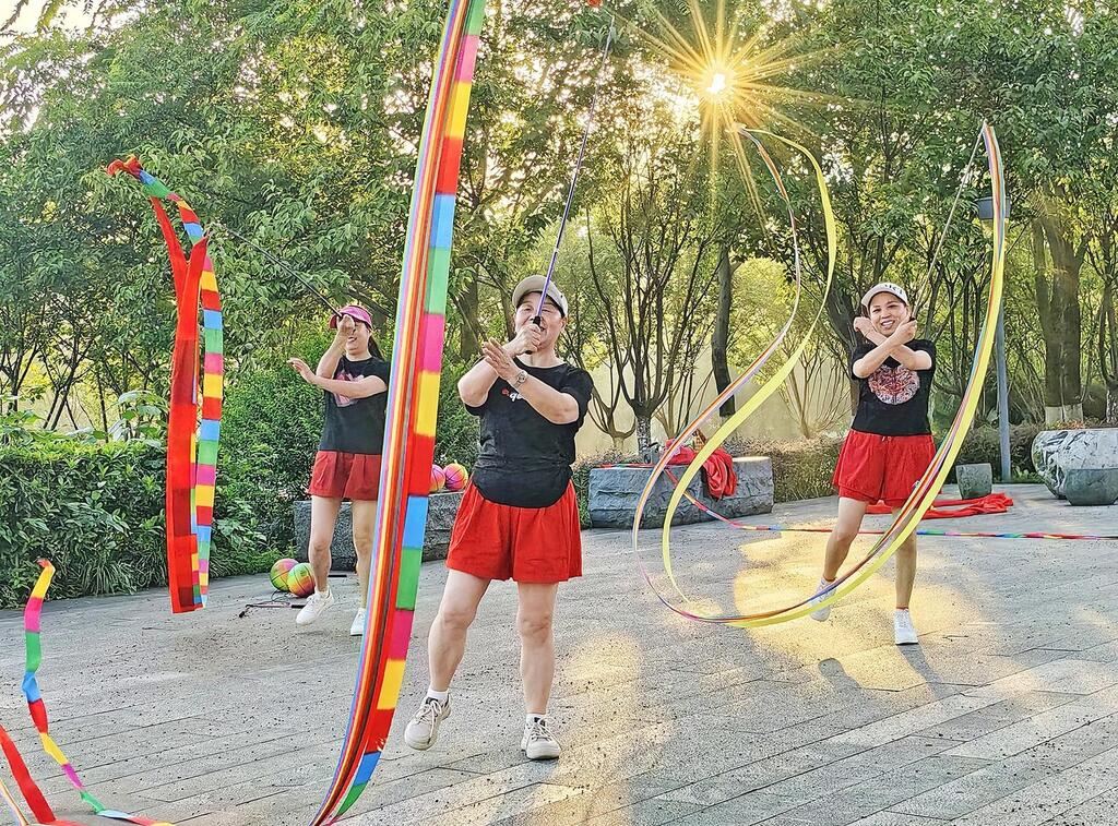 近日清晨,东津沱滨江公园里几位健身爱好者正挥动彩带,划破宁静的晨光,在空中勾勒出优美的轨迹。通讯员 向丹 摄总编辑:杨 彪副总编:吴显峰审 核:蒲娅娜校 对:朱荣欣责 编:徐丽华