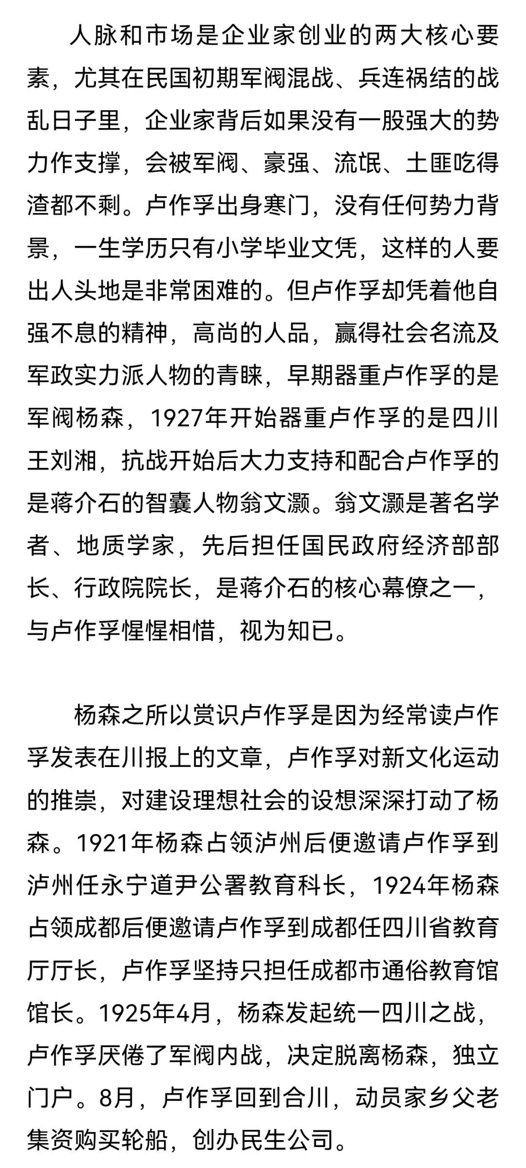 24122 次浏览 10-132025年10月11日是合川籍著名爱国实业家、教育家、社会改革家卢作孚先生在合川创立民生公司100周年纪念日现将合川区史志办原副主任杨成术撰写的《纪念民生公司成立一百周年 弘扬卢作孚企业家精神》摘录如