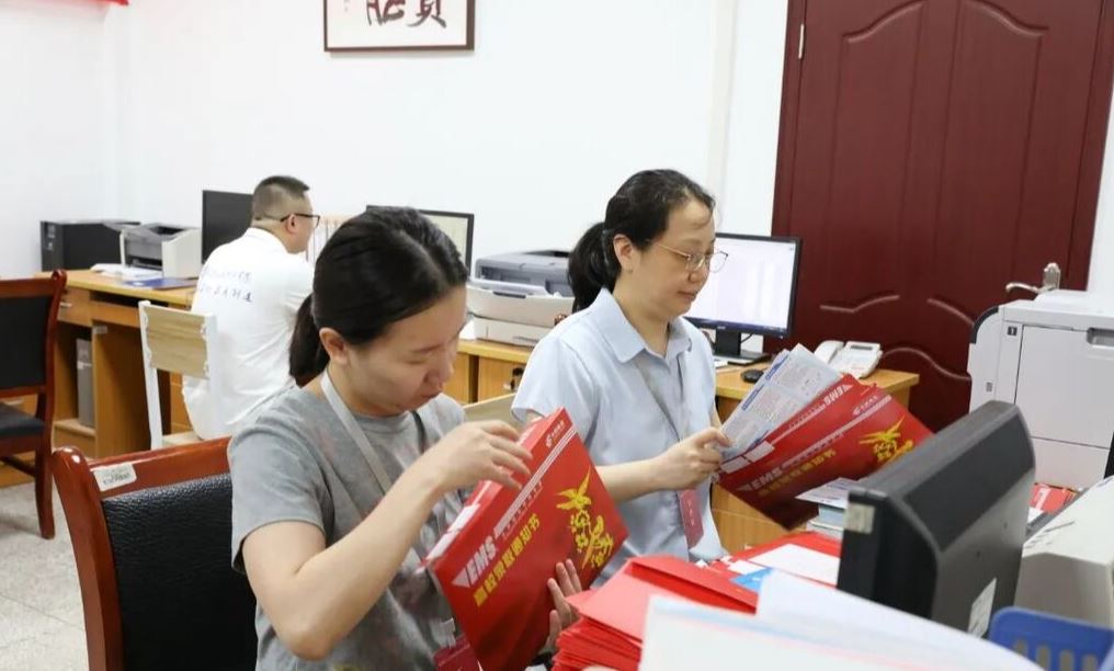 8月8日上午,重庆人文科技学院招生办公室内,老师们正细致地封装着鲜红夺目的录取通知书。这些承载着万千学子梦想的信函,即将奔向全国各地。今年,该校面向24个省(自治区、直辖市)录取新生。九月初,他们将踏