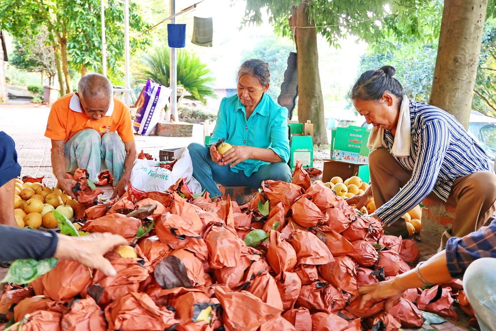 据了解,安乐村从1995年开始发展雪梨种植产业。为了提升品质和产量,重庆市合川区浩翔农业种植专业合作社负责人胡川东特意从“雪梨之乡”四川省苍溪县请来专业农技员,引入高枝换种嫁接法,将当地果树品种改良为佛尔雪梨。经过多年培育,如今安乐村的佛尔雪梨种植面积已达400亩,亩产量达1.5吨,亩产值达1.5万元,成为了当地村民的“致富果”。