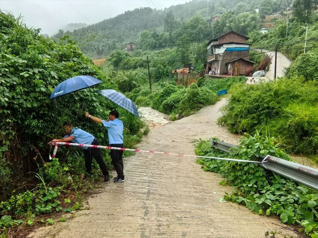 据悉,清平镇辖区有8个地质灾害点,近日接连降雨,山体滑坡风险陡增。为保障群众生命财产安全,清平镇镇村干部第一时间前往地灾点开展巡查,并安排工作人员和网格员排查地灾隐患、检查塘库堰水情,清除道路落石等。斑杨路是一条向下的斜坡路,路中拐弯处有河流经过,因降雨,路面出现漫水情况,清平镇工作人员及时在该路段拉起警戒线,并派专人值守。