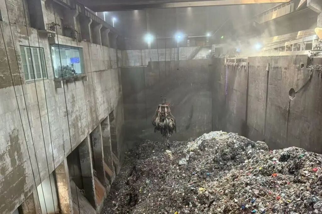 随后,大家实地参观了多个处置环节。在垃圾吊控室,透过玻璃幕墙,能看到巨型抓斗起重机像“大爪子”一样精准地抓取垃圾,然后送往焚烧炉。