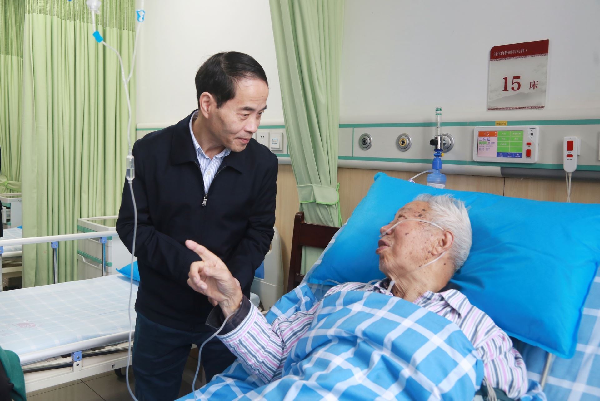 10月28日,区政协主席叶华带队前往区中西医结合医院,看望慰问离休干部王庆廷,向他送上节日的亲切问候和真挚祝福。